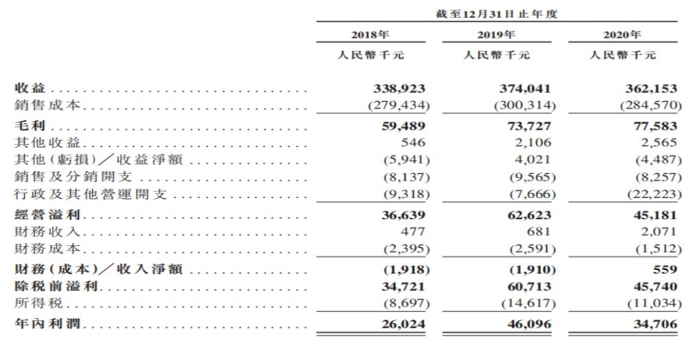 业绩方面,尽管步阳国际市占率不高,但公司业绩增长迅速,并表现出良好的盈利能力。据公司于2020年9月披露的招股书,自2017年至2019年,公司收益由2017年的2.48亿元增至2019年的3.74亿元,复合年增长率为约22.9%。上述期间毛利率,分别达到10.9%、17.6%和19.7%;净利润分别为步阳国际控股期内利润分别860.2万元、2602.4万元和4609.6万元,复合年增长率约为131.5%。