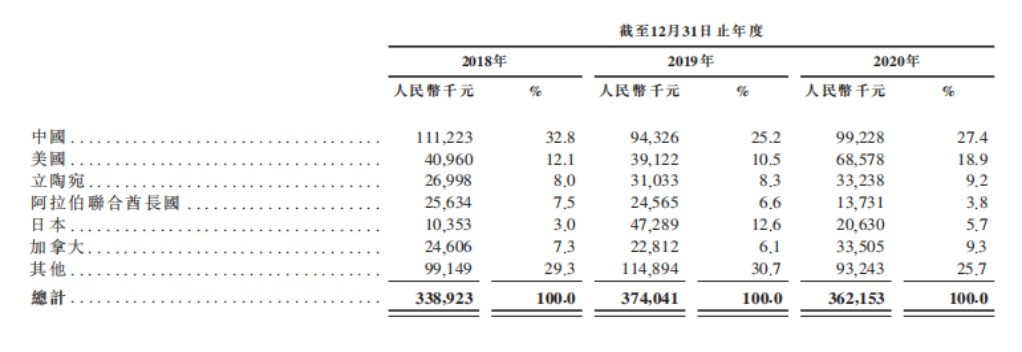 从销售策略角度来看,步阳国际走的是全球化销售路径,产品销售并不依赖少数客户。于截至2018年、2019年及2020年12月31日止年度,公司在中国的客户分别有176名、204名及169名客户,相应年度在44个、51个及52个海外国家及地区分别有80名、102名及94名客户。