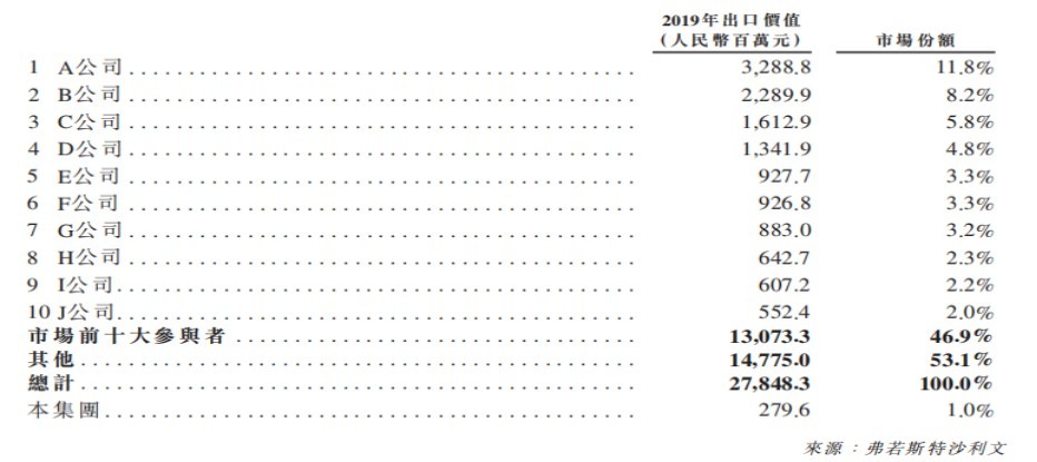根据弗若斯特沙利文的资料,按2019年铝合金汽轮出口价值计,步阳国际占中国铝合金汽轮市场约1%的市场份额。